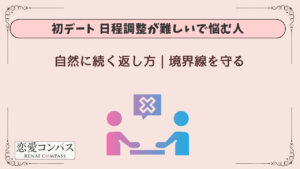 | 仕事連絡が多い | デート設計変更 | 「短めカフェにしよっか」 | 時間帯/頻度を調整 |