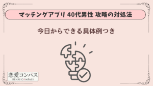 「若い頃みたいに勢いでいけない」「仕事が忙しくて時間がない」「理想も現実も分かってきて、逆に決められない」。その状態でマッチングアプリを始めると、プロフィールで何を書けばいいのか、メッセはどの頻度が正解なのか、初デートはどう誘えばいいのか…と、地味に疲れます。